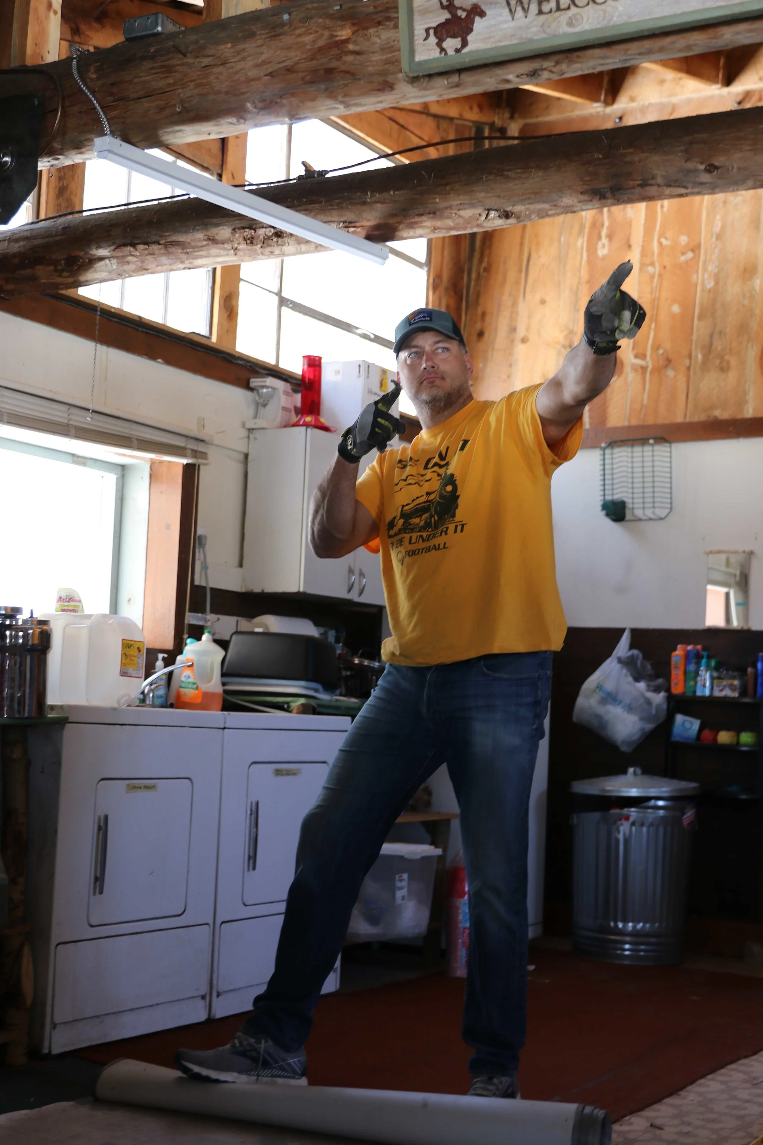 Two layers of carpet, two layers of linoleum, and one layer of tile